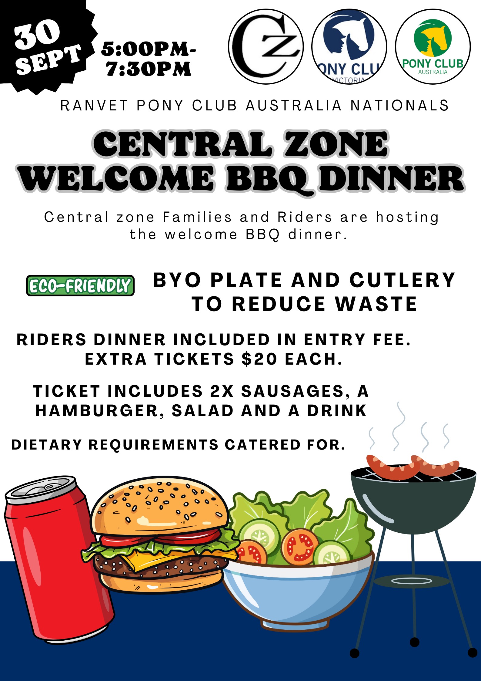- Tuesday Welcome Dinner is BBQ as per above section.